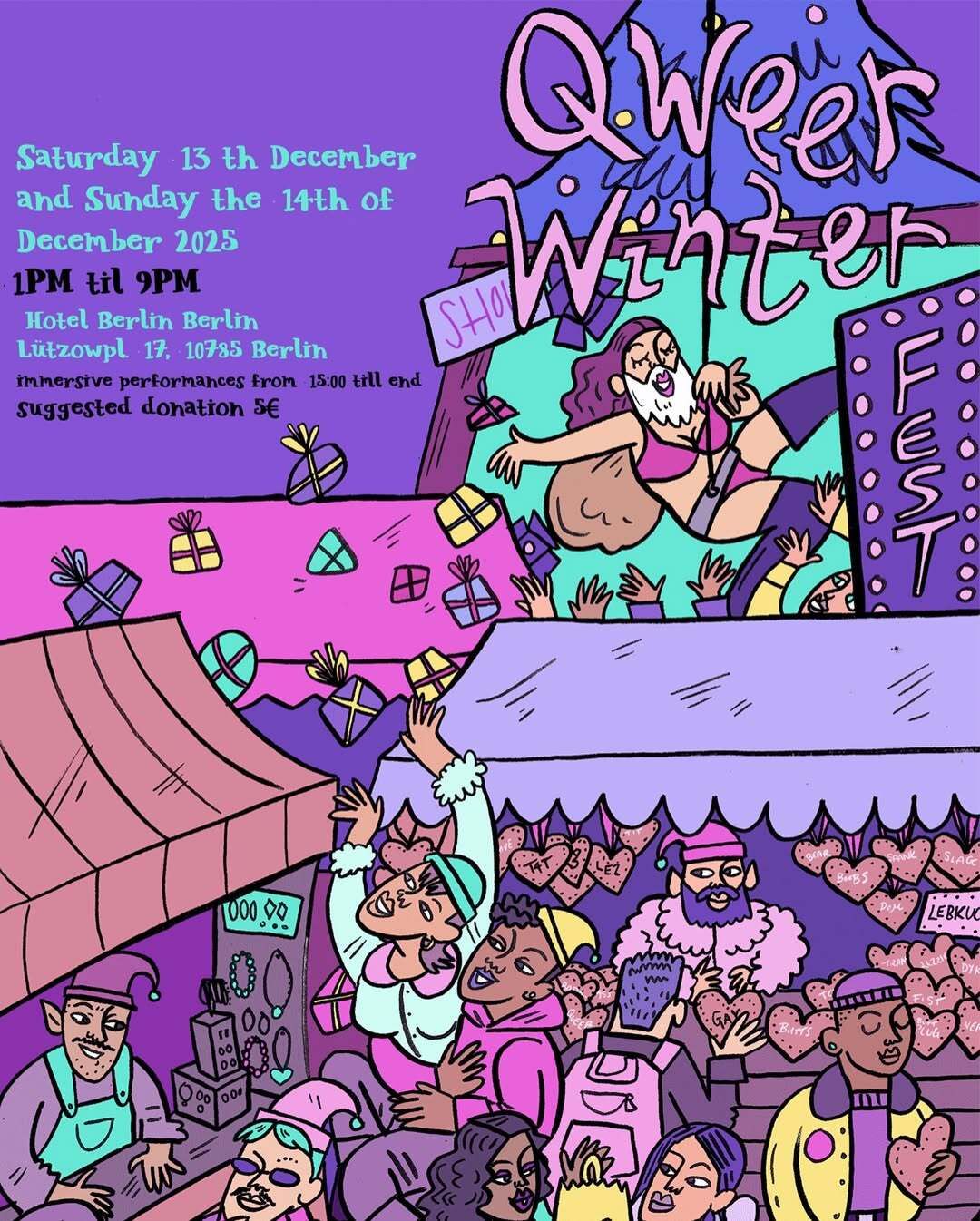 For a rainbow-flavored Christmas experience, head to Hotel Berlin this weekend. This market offers 160+ LGBTQI owned stands, alongside glühwein, teeth gems, and hourly entertainment.