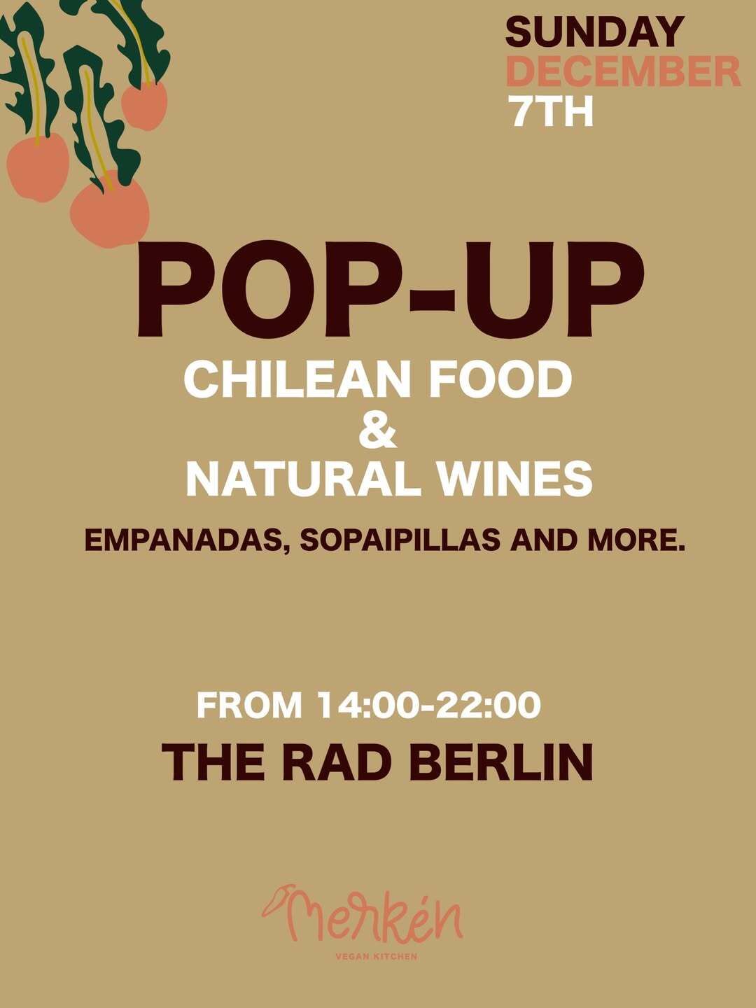 The days are cold, which means you might be craving a taste of warmer climates. You're in luck if you drop by The Rad on Sunday for sopaipillas, empanadas, and more. Everything is vegan and pairs perfectly with a glass of something natty.