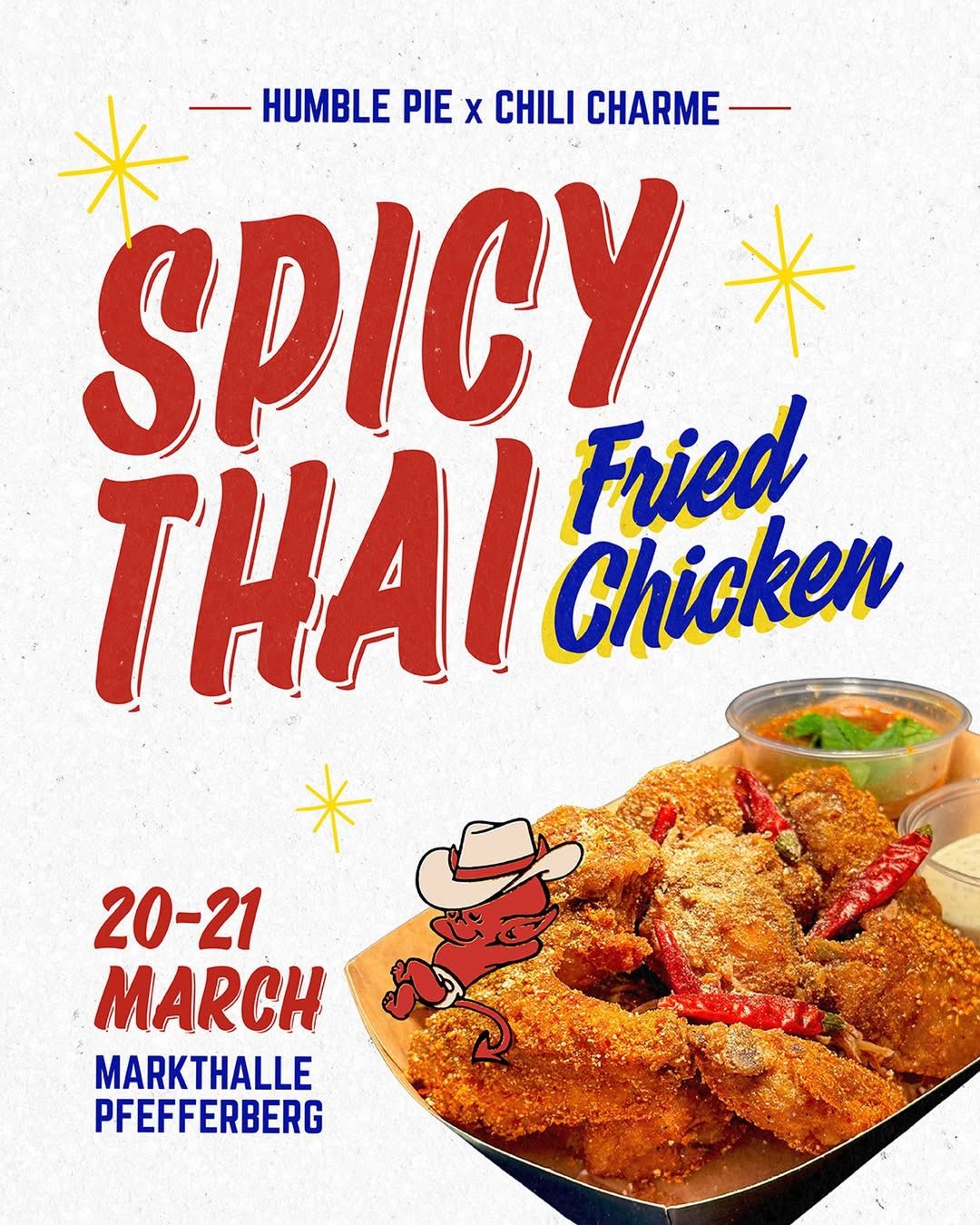 Love both the spiciness of Thai cooking meets the crunchiness of fried chicken? Don’t miss out on the Humble Pie x Chili Charme pop-up this weekend at Markhalle Pfefferberg.