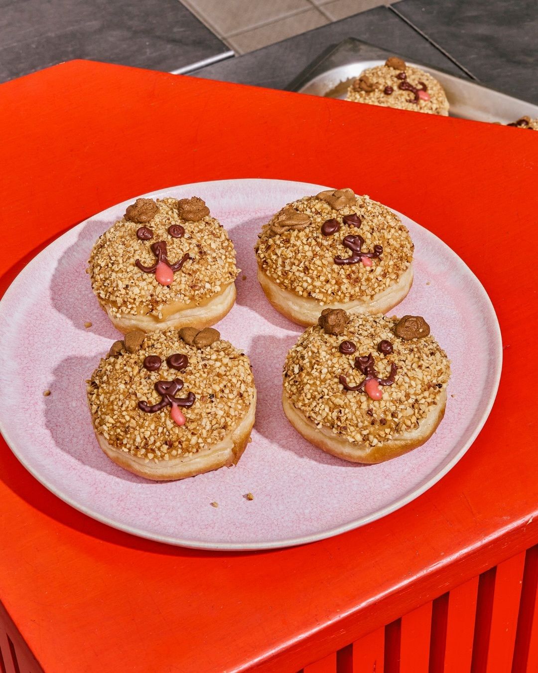A donut that looks like a dog? Brammibal’s is teaming up with their long-time friend Sophia Hoffmann for a special weekend collaboration, inspired by her adorable dog, Ella. Sophia is a Berlin-based vegan chef, author, and activist who has shaped the vegan food scene for over a decade and founded Happa Restaurant. Her donut is as cute as it is delicious: filled with hazelnut custard, glazed in caramel, rolled in crunchy chopped hazelnuts, and decorated with chocolate ears and a sweet dog face inspired by Ella. The Hazelnut Caramel Ella donut will be available November 21–23. (Disclaimer: this donut is for humans only!)