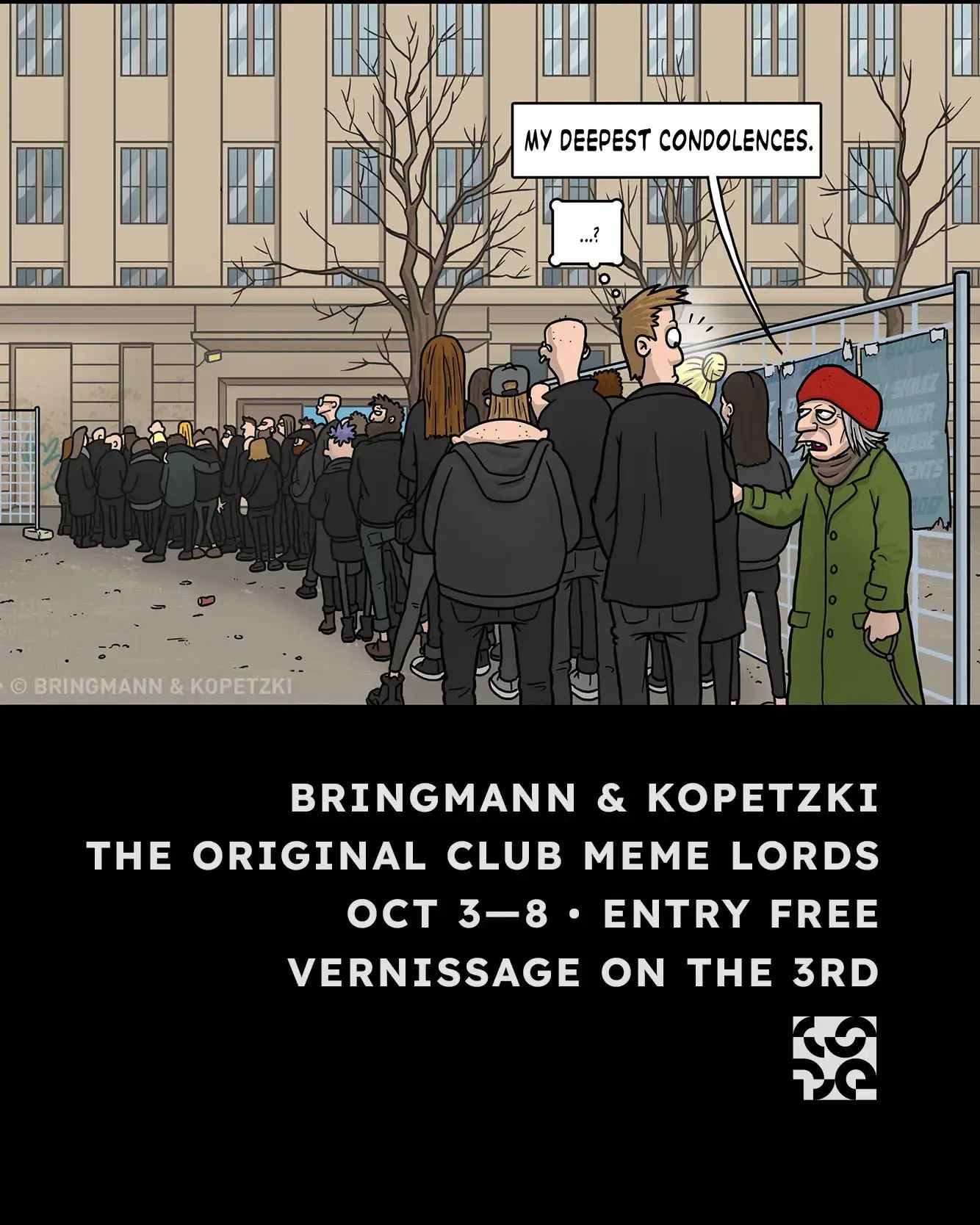 On October 3rd, THE CODE launches Bringmann & Kopetzki – 31 Years Illustrating the Techno Scene with a special Vernissage as part of Tag der Clubkultur 2025. The legendary comic duo will be on site to present their iconic works, which since the 1990s have captured the rave and techno world with biting humour, satire, and unforgettable visuals. Guests can expect drinks, DJ sets, and an exclusive first look at the retrospective, on view at THE CODE until September 9th. More info here.