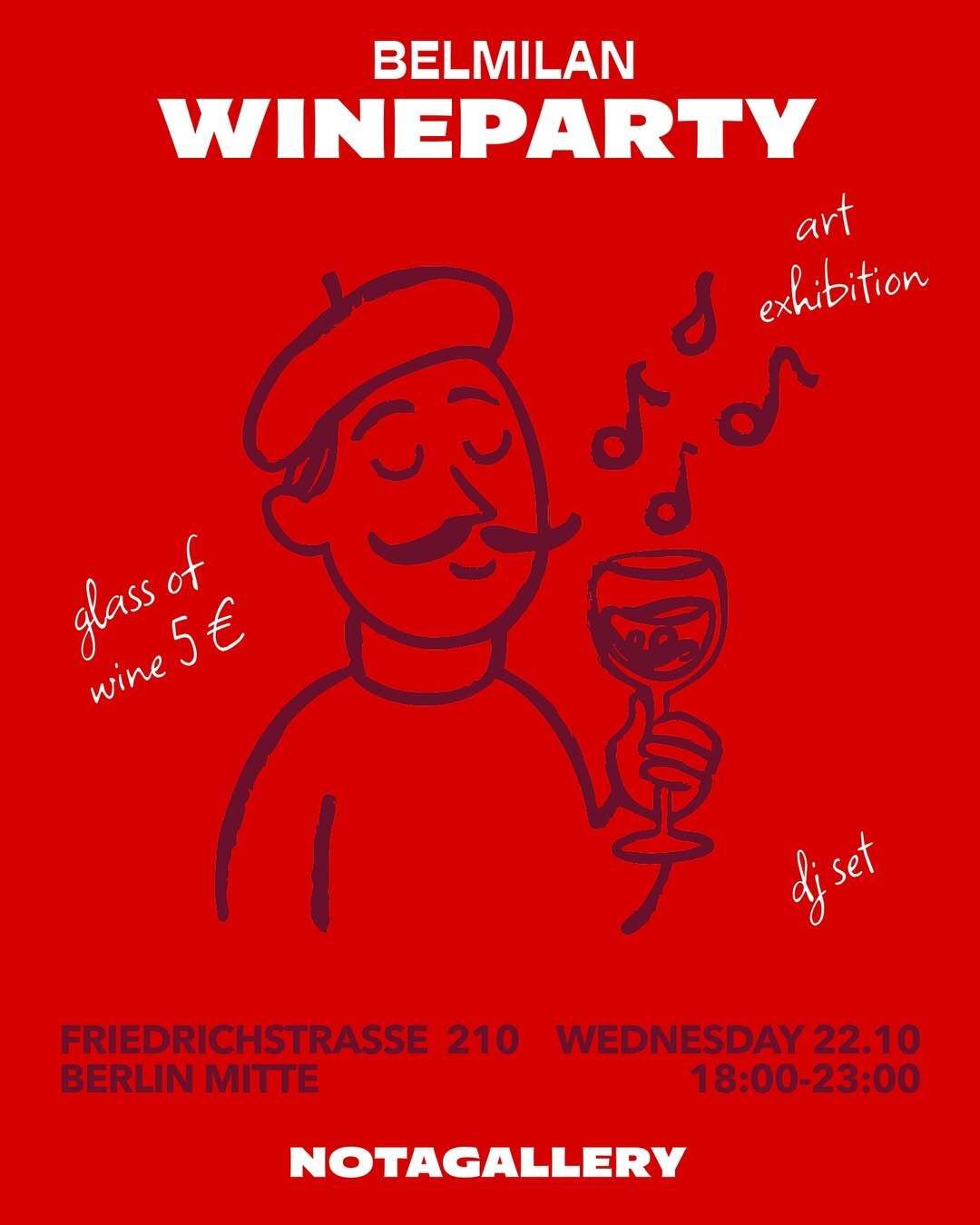 Art and wine are always cool, but even cooler when it's just 5€. Make your way over after work to catch up with friends, see some art and listen to an Afro-Latin DJ set by @mariaplass from 20:00. Get there early for happy hour from 18-19:00: buy two glasses, get a third for free!