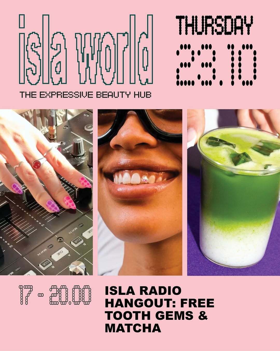 Isla and Manhattan Cosmetics present an evening of matcha, music and FREE tooth gems.
