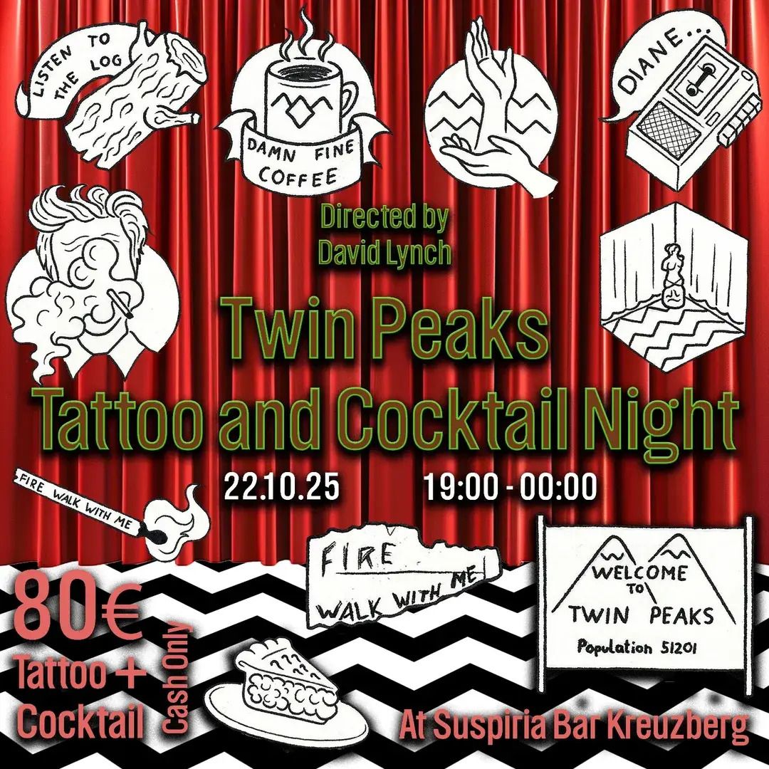 Head into spooky season with a cute new tattoo. For one evening, you can nab a Twin Peaks-inspired tattoo and a cocktail for just 80€. (Cash only.)